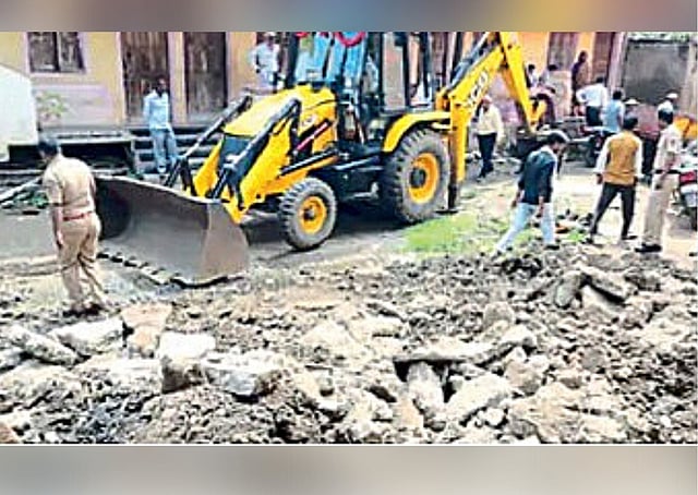 त्यामुळे शनिवारी मुख्याधिकारी श्री. मुंडे, नगर अभियंता रत्नाकर अडशिरे, स्वच्छता निरीक्षक बाळू बांगर यांच्यासह कर्मचाऱ्यांच्या पथकाने गणेशवाडी भागात पाहणी केली. त्यानंतर तातडीने जेसीबी व पोलिस पथक बोलावून अतिक्रमण हटविण्यास सुरवात केली. या अतिक्रमणामध्ये पाच पक्की बांधकामे असून, चार टीनपत्र्यांचे शेड आहेत. तसेच इतर कच्ची बांधकामे आहेत. या सर्व अतिक्रमणांवर पालिकेने हातोडा चालविला आहे.
