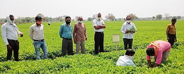 जिल्हा अधीक्षक कृषी अधिकारी संतोष आळसे व मराठवाडा कृषी विद्यापीठाचे शास्त्रज्ञ डॉ. यू. एन. आळसे यांनी तालुक्यातील केहाळ येथील कृषी भूषण शेतकरी मधुकरराव घुगे यांनी लागवड केलेल्या वेगवेगळ्या उन्हाळी भुईमूग वाणांची नुकतीच भेट देऊन पहाणी केली. श्री. घुगे यांनी एकूण २१ एकर क्षेत्रावर टी. जी. ५१, टी. जी. ३७ ए, टी. एल. जी. ४५ या सुधारित वाणांची टोकण पद्धतीने लागवड केली असून ते मागील वीस वर्षापासून उन्हाळी भुईमूग बियाणांचे सातत्याने उत्पादन घेत आहेत. त्याचप्रमाणे जास्तीतजास्त उत्पादन घेण्यासाठी सतत करत असलेल्या प्रयोगाबाबत मधुकर घुगे यांनी यावेळी उपस्थित अधिकारी व शेतकरी यांना सविस्तर माहिती दिली. या कामी त्यांचे बंधू व कृषी विभागातील सेवानिवृत्त अधिकारी पद्माकरराव घुगे हे त्यांना मार्गदर्शन व सहकार्य करत आहेत.