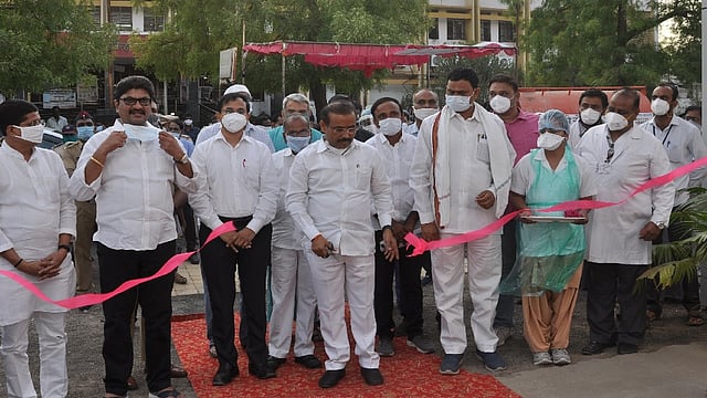 जालना - कोरोना विषाणूचा प्रादुर्भाव झालेल्या रुग्णांसाठी सुसज्ज व सर्वसोयींनीयुक्त अशा १५० खाटांची क्षमता असलेल्या कोरोना हॉस्पिटलचे लोकार्पण शुक्रवारी (ता. २४) आरोग्यमंत्री तथा पालकमंत्री राजेश टोपे यांनी फीत कापून केले. यानिमित्त श्री. टोपे म्हणाले, की केवळ २९ दिवसांमध्ये उभारणी केलेल्या सुसज्ज कोरोना रुग्णालयाच्या, सर्व प्रतिबंधात्मक उपाययोजनांच्या व सर्वांच्या सहकार्याने जिल्हा कोरोनाच्या मुकाबल्यासाठी सज्ज आहे.