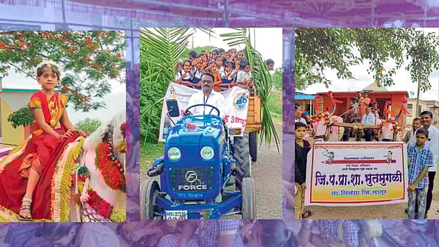 लातूर : जिल्ह्यातील जिल्हा परिषदेची पहिली सेमी इंग्रजी शाळा म्हणून नावलौकिकास आलेल्या मुरूड येथील पारूनगर जिल्हा परिषद प्राथमिक शाळेत बुधवारी पहिल्याच दिवशी सुमारे ५२ विद्यार्थ्यांनी प्रवेश घेतले. या विद्यार्थ्यांची खास रथातून मिरवणुक काढण्यात आली. शिक्षण उपसंचालक डॉ. गणपत मोरे व मुख्य कार्यकारी अधिकारी अभिनव गोयल यांनी मिरवणुकीत सहभागी होत विद्यार्थ्यांचे स्वागत केले. नवीन विद्यार्थ्यांसह शाळेतील पहिली ते सातवीपर्यंतच्या विद्यार्थ्यांची संख्या ९०९ पर्यंत पोहचली असून पहिल्या दिवशी सातशे विद्यार्थ्यांनी शाळेत हजेरी लावली.कोरोनानंतर तब्बल दोन वर्षानी शाळा शैक्षणिक वर्षाच्या पहिल्या दिवशी सुरू झाल्या.