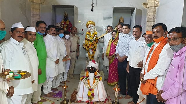 हिंगोली : तालुक्यातील नर्सी नामदेव (Narsi Namdev) येथील संत नामदेव महाराज मंदिरात आषाढी एकादशीनिमित्ताने मंगळवारी (ता.२०) सकाळी ७.४५ वाजता महापुजा झाली. त्यानंतर मंदिर बंद करण्यात आले. भाविकांसाठी मंदिर बंदच आहे. हिंगोली (Hingoli) तालुक्यातील नर्सी नामदेव येथील संत नामदेव महाराज मंदिरात दरवर्षी आषाढी एकादशी निमित्ताने जिल्ह्यासह इतर जिल्ह्यातील तसेच विदर्भातील भाविक दर्शनासाठी येतात. अनेक गावातून पायी दिंड्या देखील येतात. येथे फडकऱ्यासह भाविकांची मांदियाळी असते. संत नामदेव महाराज यांच्या दर्शनासाठी भाविकांच्या पहाटेपासून रात्री उशिरापर्यंत लांबच लांब रांगा असतात. ज्या भाविकांना आषाढी (Ashadhi Ekadashi) निमित्ताने पंढरपूर येथे जाता आले नाही. ते भाविक भक्त नर्सी नामदेव येथे हमखास नामदेवांच्या दर्शनासाठी येतात. मात्र मागच्या वर्षीपासून कोरोनाच्या संकटामुळे हे मंदिर भाविकांच्या दर्शनासाठी बंदच आहे. या वर्षी देखील आषाढी एकादशीला कोरोना (Corona) संकटामुळे मंदिर बंदच असुन जिल्ह्यात जमाव बंदीचे आदेश आहेत.(mahapuja performed in Saint namdev maharaj mandir at hingoli glp88)
