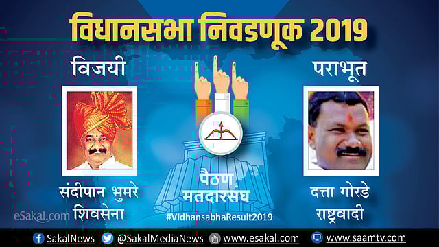 23 फेऱ्यानंतर भूमरे यांनी 14 हजार 260 मतांची आघाडी घेत विजयावर शिक्कामोर्तब केले. पैठण विधानसभा मतदारसंघात एकूण 2 लाख 11 हजार 280 मतदान झाले होते. त्यामध्ये शिवसेनेला 83 हजार 403 मते ; तर दत्ता गोर्डे यांना 69 हजार 264 मते मिळाली. संदीपान भूमरे यांनी 14 हजार 139 हजार मतांची आघाडी घेत विजय निश्चित केला.
