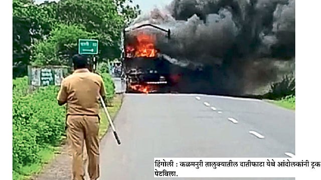 दाती फाटा (ता. कळमनुरी) येथे ट्रक पेटवला