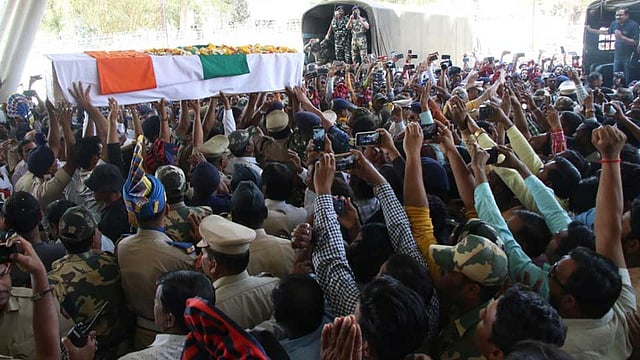 शनिवारी दिल्लीहुन हवाई दलाच्या विशेष विमानाने दुपारी बारा वाजता चिकलठाणा आंतरराष्ट्रीय विमानतळावर जवानांच्या पार्थिव आणण्यात आले. हल्ल्यामूळे सर्वांच्या मनात चिड असून या जवानाचे पार्थिव येताचा पाकिस्ताना मुर्दाबादच्या जोरदार घोषणा नागरिकांनी दिल्या. संजयसिंह राजूपत अमर रहे, नितिन राठोड अमर रहेचा जयघोष झाला. पोलिस, सीआरपीएफ आणि सीआयएसएफ जवानातर्फे ही मानवंदना देण्यात आली.