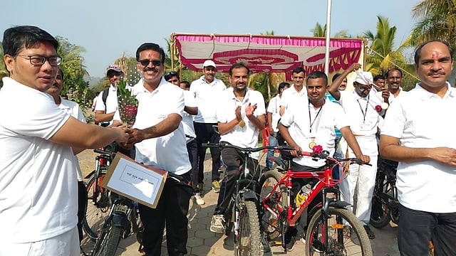 हिंगोली : स्वच्छ माझे कार्यालय, सुंदर माझे गाव या उपक्रमांतर्गत जिल्हा परिषदेच्या १०० अधिकारी, कर्मचाऱ्यांनी शनिवारी (ता. २३) रॅलीत सहभाग घेऊन हिंगोली ते औंढा असे २४ किलोमीटरचे अंतर सायकलवर पार करून जागोजागी स्वच्छतेबाबत जनजागृती करण्यात आली. रॅलीला जिल्हा परिषद अध्यक्ष गनाजी बेले, उपाध्यक्ष मनीष आखरे यांनी हिरवी झेंडी दाखविली.