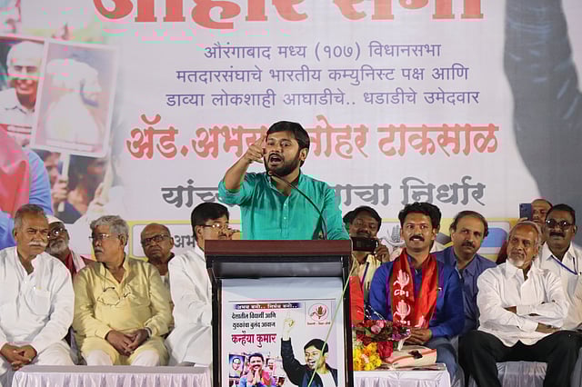 आमखास मैदान येथे गुरुवारी (ता. 17) औरंगाबाद मध्य विधानसभा मतदारसंघाचे भाकप आणि डाव्या लोकशाही आघाडीचे उमेदवार ऍड. अभय टाकसाळ यांच्या प्रचारार्थ कन्हैय्याकुमार यांची सभा झाली. यावेळी अण्णासाहेब खंदारे, प्रा. राम बाहेती, अश्फाक सलामी, सांडू जाधव, भाऊसाहेब झिरपे, ऍड. मनोहर टाकसाळ, सुभाष लोमटे यांची प्रमुख उपस्थिती होती.