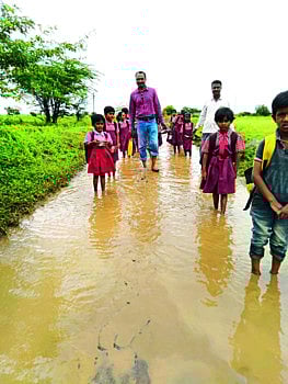 पावसाळ्यात मुलांना रस्त्यावरील पाणी, चिखलातून वाट काढत शाळा गाठावी लागते. मुलांचे होणारे हाल लक्षात घेत प्रशासनाने तत्काळ लक्ष देऊन योग्य ती उपाययोजना करावी.