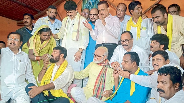 छत्रपती संभाजीनगर विमानतळावर शनिवारी दुपारी शिष्टमंडळ दाखल झाले. शिष्टमंडळाची विमानतळावरच काही वेळ बैठक झाली. त्यानंतर ते जालन्यातील उपोषणस्थळी वडगोद्रीच्या दिशेने रवाना झाले. दुपारी सव्वा दोनच्या सुमारास शिष्टमंडळ उपोषणस्थळी दाखल झाले. या शिष्टमंडळाची लक्ष्मण हाके, नवनाथ वाघमारे यांच्यासोबत सकारात्मक चर्चा झाली. त्यानंतर हाके यांनी उपोषण तूर्त स्थगित केल्याची घोषणा केली. शिष्टमंडळाच्या हाताने पाणी पिऊन उपोषणकर्त्यांनी दहा दिवसांपासून सुरू असलेले उपोषण सोडले.