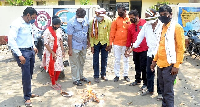एकतर शाळा सुरु करा नाहीतर मानधन तरी द्या. आम्हाला ही सन्मानाने जगू द्या असा आर्त टाहो या शाळा संस्थाचालकांनी ह शिक्षण विभाग आणि गटशिक्षणाधिकारी कार्यालय वसमत यांच्या कार्यालयासमोर कोरोनाचे सर्व नियम पाळून शासन आदेश ( जीआर ) जाळून केला आहे. निवेदनावर वसमत येथिल लिटल किंग्ज इंग्लिश स्कूलचे संस्थापक प्रा. डॉ. नामदेव दळवी, सह्याद्री पब्लिक स्कूलचे संस्थापक गजानन कदम, लाल बहादूर शास्त्री इंग्लिश स्कूलचे संदिप चव्हाण, राजर्षी पब्लिक स्कूल वसमतचा संस्थापिका श्रीमती पडोळे, विद्याभारती सेमी इंग्लिश स्कूलचे संस्थापक सचिव परामानंद खराटे, वसमत पंचायत समीतीचे सदस्य बालाजी मिरकुटे, इंदुरा सीबीएससी इंग्रजी माध्यम शाळेचे संस्थापक श्री. पानखेडे व वसमत तालुका मेस्टा सदस्य उपस्थित होते.