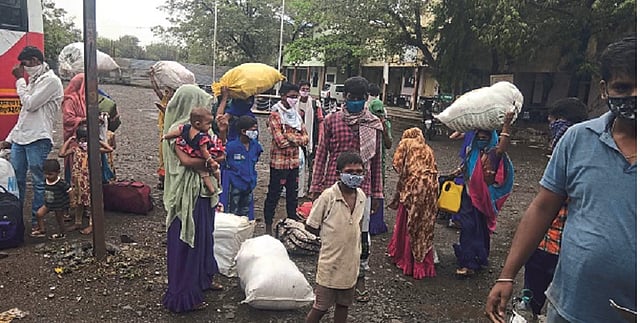 मध्य प्रदेशातील मजुरांचे कुटुंब गेल्या एक वर्षापासून सिमेंटच्या विटा तयार करण्याच्या कामासाठी होते. लॉकडाउनमुळे कामावर निर्बंध आले. त्यांना जेवणाची सोय केली होती; मात्र गावाकडे जाण्याची प्रबळ इच्छा असल्याने तहसील कार्यालयाकडे नोंदणी केली. अधिकाऱ्यांनी सहकार्य केल्याने मजुरांच्या जाण्याचा मार्ग खुला झाला.