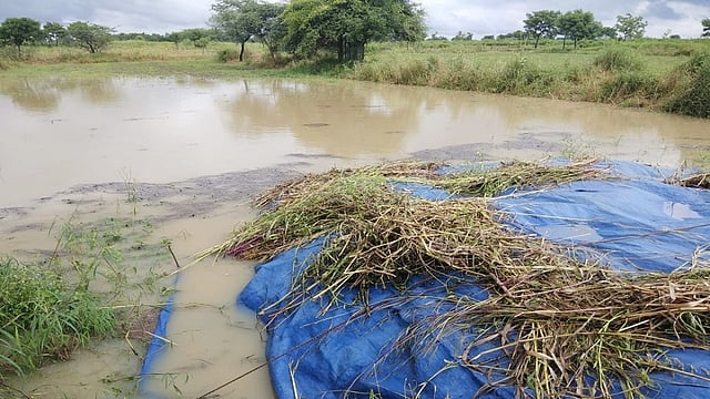 उमरगा तालुक्यात १३ ऑक्टोबरच्या रात्रीपासुन १४ ऑक्टोबरला सकाळी नऊपर्यंत जोरदार पर्जन्यवृष्टी झाल्याने संपूर्ण तालुका जलमय झाला होता. अनेक ठिकाणी शेतीचे बांध फुटुन शिवार जलमय झाले. बहुतांश शेतकऱ्यांनी मोठ्या परिश्रमातून सोयाबीनची काढणी गंजी उभारल्या होत्या मात्र त्या आता पाण्यात अडकल्या आहेत. ओढे, नदी काठच्या शेतातील सोयाबीनच्या अख्या गंजी नदीपात्रातील पाण्यावर शेतकऱ्यांच्या डोळ्यादेखत तरंगत गेल्या. अनेक ठिकाणी गंजीत पाणी शिरल्याने सोयाबीनचे मोठ्या प्रमाणात नुकसान झाले आहे. ऊसाची स्थितीही भयावह आहे, ऊसाच्या अनेक क्षेत्रात पाणी साचले आहे. जमिनीची मातीही वाहून गेल्याने सोनं पिकविणाऱ्या क्षेत्रात खडक, दगडांचा खच पडला आहे. दरम्यान पिकाबरोबरच पिकच वाहून गेल्याने ओल्या जखमांच्या वेदनांनी शेतकरी हतबल झाला आहे. दरम्यान कांही मोजक्या सूरक्षित असलेल्या सोयाबीनच्या राशी करण्याचे काम सुरू असताना मंगळवारी (ता.२०) पावसाने त्यात विघ्न आणले.