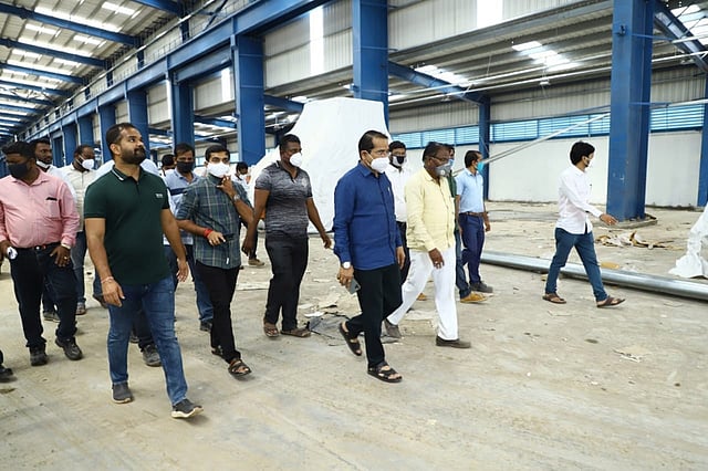 श्री. पवार यांनी रविवारी (ता. ३०) या कारखान्याला भेट देवून पाहणी केली तसेच कामाचा आढावाही घेतला. या कारखाना उभारणीचे ऐंशी टक्के काम पूर्ण झाले आहे. यामध्ये मजबुतीकरणासाठी ३ हजार ५०० व संरचनात्मक बांधणीसाठी ६ हजार ८५० मेट्रिक टन स्टीलचा वापर करण्यात आला आहे. तर ५ लाख ५० हजार बॅग सिमेंट वापरले गेले आहे. याचबरोबर ८६ हजार चौरसफूट रुफशीटचा वापर करण्यात आला आहे, अशी माहिती त्यांनी दिली. या कारखाना भेटी दरम्यान निदर्शनास आलेल्या बाबींचा सविस्तर आढावा श्री. गोयल यांना दिला जाणार असल्याचे त्यांनी सांगितले.