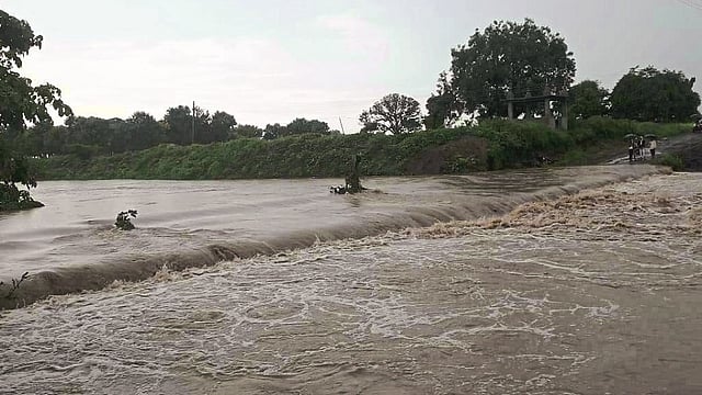 जाफराबाद तालुक्यात ठिकठिकाणी मुसळधार पाऊस पडला. टेंभुर्णी परिसरात शुक्रवारी जीवरेखा नदीला मोठा पूर आला होता. दमदार पाऊस पडल्याने परिसरातील नदी, नाले, ओढे खळखळून वाहिले. जीवरेखा नदीवर येथील आंबेगाव रोडवरील पुलावरून पाणी वाहत असल्याने वाहतूक ठप्प झाली होती. शेतकऱ्यांचे या रस्त्यावरून मार्गक्रमण करणे कठीण झाले. शेतकरी; तसेच ग्रामस्थ दोन्हीकडील काठांवर अडकून पडले होते.