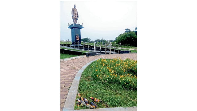 शंकरराव चव्हाण यांच्या पुतळ्यासमोर बिअर व दारूच्या बाटल्या दिसतात. ते ठिकाण सुरक्षा रक्षकांच्या प्रवेशद्वारापासून अगदी जवळच आहे; परंतु सुरक्षा रक्षकांचा फेरफटका सुरू असताना हे सर्व घडत आहे. त्यामुळे मद्यशौकिनांची हिंमत वाढत चालली आहे. हे मद्यशौकिन मद्यधुंद झाल्यावर पर्यटकांशी विनाकारण हुज्जत घालून त्रास देत असल्याचे प्रकार येथे घडत आहेत; परंतु पर्यटक वाद नको म्हणून तक्रार न करताच निघून जात असल्याची माहिती सूत्रांनी दिली.