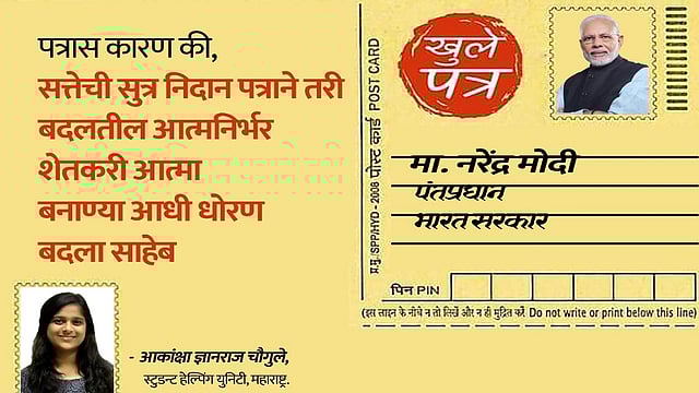 आधी लेकरू पाटी वाचून शिक्षणापासून वंचित राहायचं आता नेट वाचून राहतय त्यात पाऊस आला तरी घर गळत आणि नाही आला तर पिक जळत आम्ही सरकारी कार्यालयात जाव तर पंचनाम्यापेक्षा पंचायती जादा आणि लाभार्थी योजनाचा पैसा पण भेटत नाही. आधीच रस्त्यावर आलेलो आम्ही, झेंडे घेऊन रस्त्यावर उतरावं तर कायद्याच्या उल्लंघनाचे बळी. साहेब निवडणुकीसाठी आम्ही आपल्यासाठी अग्रक्रमी आहोत. पण निवडणुकीनंतर क्रमवारीत पण नाही! कायद्याच्या दृष्टीने २७१ जागा हे बहुमत जरी असले तरी १४.५ कोटी शेतकरी सुद्धा या बहुमताचा भाग आहे. हा विचार तुम्ही करायला हवा होता. तुमच्या अशा कितीएक निर्णयामुळे गळ्यातील सुती उपरण्याची जागा सुती दोरी घेत आहे.