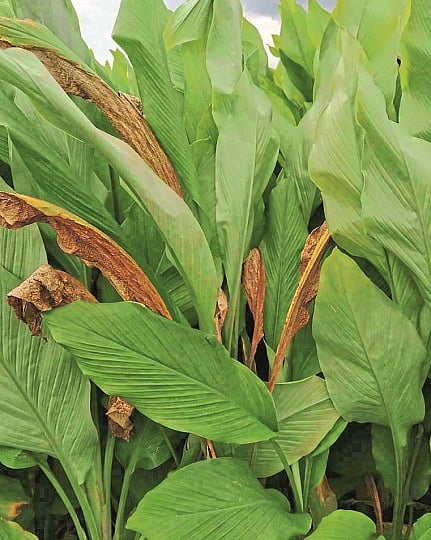 चारठाणा : परतीच्या पावसाने खरीपातील सोयाबीनसह कापूस, तूरीचे मोठे नुकसान झाले. या नुकसानीची प्रशासनाकडून अजूनही कुठलीच दखल घेण्यात आली नाही. हळदीसाठी मागील वातावरण पोषक ठरल्याने पीक चांगलेच बहरावर आले होते. आता हळदीचे कंद परिपक्व होण्याच्या स्थितीत असताना पावसाने दणादण सुरू केली. त्यामुळे काढणीवर आलेल्या सोयाबीन व इतर पिकांना फटका बसला. त्याशिवाय अति पावसामुळे हळदीवर करपा रोगाचा प्रादूर्भाव मोठ्या प्रमाणात झालेला दिसतो. हळदीवर करप्या रोग पडल्याने हळद उत्पादक शेतकरी हतबल झाला आहे. हळदीसाठी मोठा लागवड खर्च करून पिक जोपासले. खत, औषधी फवारणी, किड व्यवस्थापनासाठी शेतकऱ्यांनी मोठा खर्च केला. परंतू, सद्यस्थितीत वातावरणात बदल झाला असून ढगाळ वातावरण व सकाळ, सायंकाळी धुके पडत असल्याने हळदीवर मोठ्या प्रमाणात करपा रोग पडला आहे. महसूल विभागासह पिक विमा कंपनीच्या वतीने कुठलेच पंचनामे करण्यात आले नाही. त्यामुळे शेतकरी चिंतातूर झाला आहे.