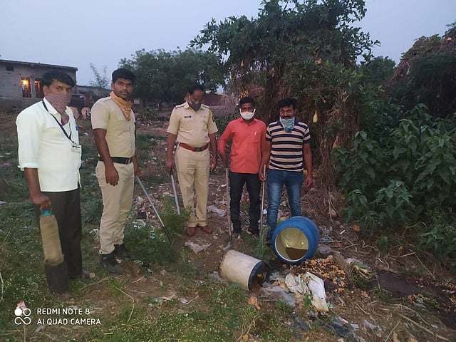 हिंगोली ः सेनगाव तालुक्यातील गोरेगाव पोलिस ठाण्यांतर्गत येणाऱ्या सवना तांडा येथे हातभट्टीची दारू विक्री होत असल्याची माहिती पोलिसांना मिळाली. यावरून रविवारी (ता. १९) येथे धाड टाकून गावठी दारू व सडके रसायनाचे साहित्य, असे ३४ हजारांचे साहित्य नष्ट करण्यात आले आहे. सवना तांडा येथे हातभट्टीची दारू सुरू असल्याची माहिती गोरेगाव पोलिसांना मिळाल्यानंतर पोलिस निरीक्षक विद्यासागर श्रीमनवार यांच्या मार्गदर्शनाखाली काशिनाथ शिंदे, विजय कालवे, श्री. कदम, विजय महाले यांच्या पथकाने रविवारी सायंकाळी धाड टाकली असता हातभट्टीचे सहाशे ८० रुपयांचे रसायन व व गावळी दारू, असे एकूण ३४ हजार रुपये किमतीचे रसायन नष्ट करण्यात आले. या बाबत सुधाकर राठोड, अंबादास आडे, चरणदास आडे, विठ्ठल राठोड, बालाजी जाधव, प्रकाश जाधव, उल्हास चव्हाण यांच्या विरोधात पोलिस कर्मचारी साहेबराव राठोड यांच्या फिर्यादीवरून गोरेगाव पोलिसात गुन्हा दाखल केला आहे.