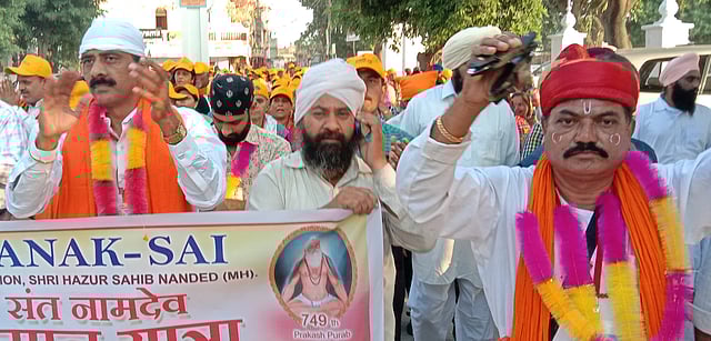 नांदेड : 'नानक साई' फाऊंडेशनची सहावी संत नामदेव घुमान सद्भावना यात्रा शनिवारी (ता. नऊ) नोव्हेंबर रोजी नामदेवनगरी घुमानमध्ये दाखल झाली. ही यात्रा संत नामदेव महाराज यांच्या जन्मोत्सवात सहभागी झाली. नामदेवांच्या समाधीपुढे नतमस्तक झाली. यात्रेचे घुमाननगरीने अभूतपूर्व असे स्वागत केले.