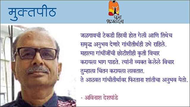 जळगावची टेकडी हिरवी होत गेली आणि तिथेच समृद्ध अनुभव देणारे गांधीतीर्थही उभे राहिले. महात्मा गांधींजींची छोटीशीही कृती विचार करायला भाग पाडते. त्यांनी व्यक्त केलेले विचार तुम्हाला चिंतन करायला लावतात. ते आठवत गांधीतीर्थावर फिरताना शांतीचा अनुभव येतो.