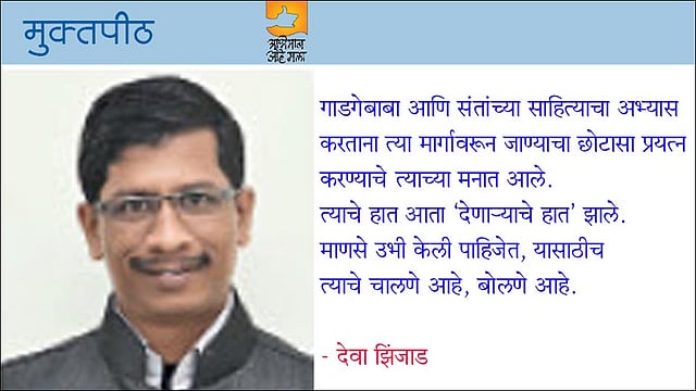 गाडगेबाबा आणि संतांच्या साहित्याचा अभ्यास करताना त्या मार्गावरून जाण्याचा छोटासा प्रयत्न करण्याचे त्याच्या मनात आले. त्याचे हात आता "देणाऱ्याचे हात' झाले. माणसे उभी केली पाहिजेत, यासाठीच त्याचे चालणे आहे, बोलणे आहे.