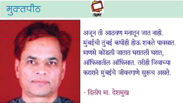 अजून ती आठवण मनातून जात नाही. मुंबईची तुंबई कधीही होऊ शकते पावसात. माणसे कोंडली जातात घरातली घरात, ऑफिसातील ऑफिसात. तरीही जिवाच्या कराराने मुंबईचे जीवनगाणे सुरूच असते.