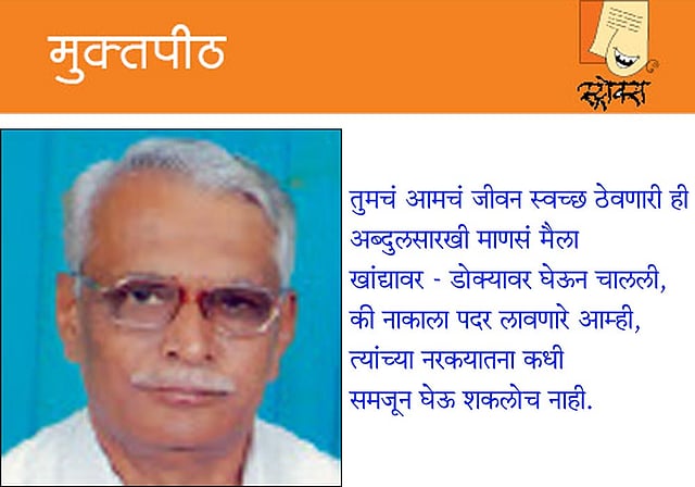 तुमचं आमचं जीवन स्वच्छ ठेवणारी ही अब्दुलसारखी माणसं मैला खांद्यावर - डोक्यावर घेऊन चालली, की नाकाला पदर लावणारे आम्ही, त्यांच्या नरकयातना कधी समजून घेऊ शकलोच नाही.