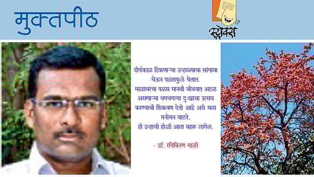 दीर्घकाळ टिकणाऱ्या उन्हाळ्याचा सांगावा घेऊन पळसफुले येतात. माळावरचा पळस मानवी जीवनात अटळ असणाऱ्या धगधगत्या दुःखाचा उत्सव करण्याची शिकवण देतो आहे असे मला मनोमन वाटते. ही उन्हाची होळी आता बहरू लागेल.