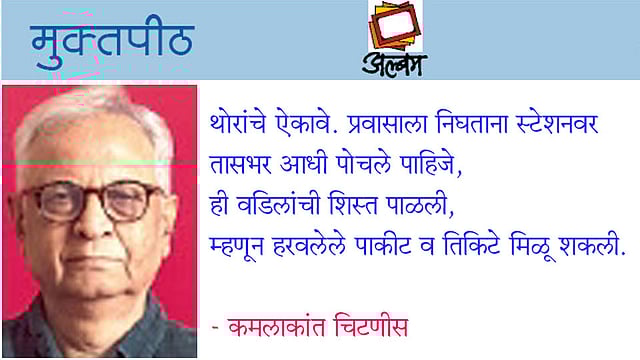 थोरांचे ऐकावे. प्रवासाला निघताना स्टेशनवर तासभर आधी पोचले पाहिजे, ही वडिलांची शिस्त पाळली, म्हणून हरवलेले पाकीट व तिकिटे मिळू शकली.