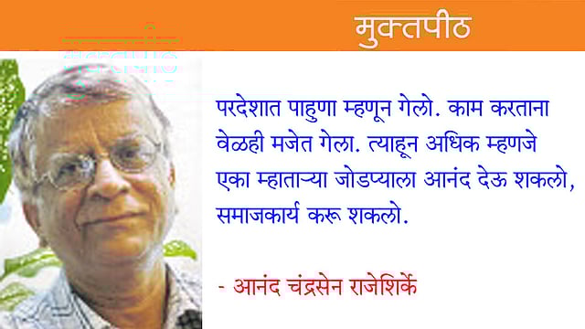 परदेशात पाहुणा म्हणून गेलो. काम करताना वेळही मजेत गेला. त्याहून अधिक म्हणजे एका म्हाताऱ्या जोडप्याला आनंद देऊ शकलो, समाजकार्य करू शकलो.