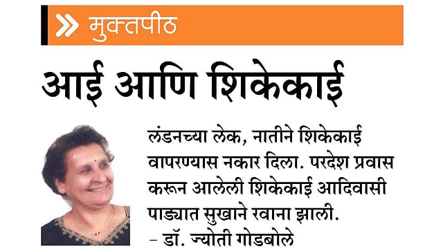 मी म्हटले, ‘‘सखे रुसू नको, रागावू नको. खिन्न होऊ नको. पुढच्या महिन्यात जाणारेस ना आदिवासी कॅंपला? तिकडे दे हे. अगदी योग्य स्थळी पडेल ही शिकेकाई.’’ वर्षाच्या चेहऱ्यावर आनंद दाटला. लंडनचा प्रवास करून आलेली शिकेकाई ठाण्याजवळच्या आदिवासी पाड्यात सुखासमाधानाने रवाना झाली.