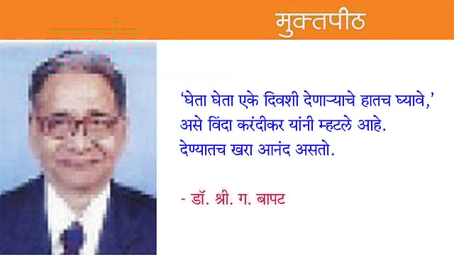 "घेता घेता एके दिवशी देणाऱ्याचे हातच घ्यावे,' असे विंदा करंदीकर यांनी म्हटले आहे. देण्यातच खरा आनंद असतो.