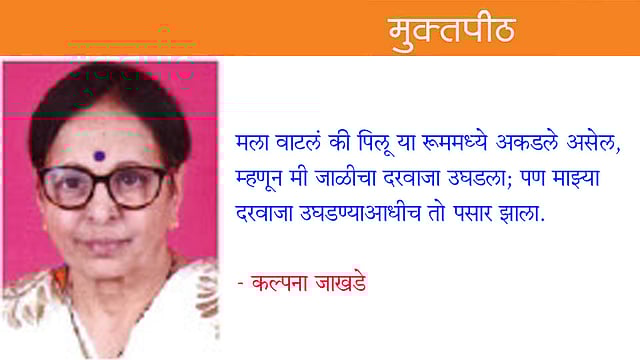 आमच्या मोठ्या बंगल्यात सध्यातरी आम्ही दोघंच आणि तो असतो. इवलासा राखाडी, पिवळसर चिमणीहूनही आकाराने लहान चोच; मात्र मस्त मोठी असलेला, इवलाले काळेभोर डोळे असलेला तो पक्षी गेले तीन महिने स्वयंपाकघराच्या बाहेरच्या कॅनॉपी कम रूममध्ये अगदी बारीक जाळीतून येऊन कपडे वाळत टाकायच्या दोरीवर बसतो. तिथे एक कपड्यांसाठी हॅंकरही आहे. त्याला पकडून ही स्वारी संध्याकाळी येते आणि सकाळी उजाडल्यावर जाते. मी जेव्हा पहिल्यांदा त्याला पाहिलं तेव्हा मला वाटलं की पिलू या रूममध्ये अकडले असेल, म्हणून मी जाळीचा दरवाजा उघडायला गेले; पण माझ्या दरवाजा उघडण्याआधीच तो जाळीतून पसार झाला. नंतर पुन्हा थोड्या वेळाने ऐटीत दोरीवर बसला. जणू काही कसं चुकवलं तुला? असा खोडकर अविर्भाव वाटला. त्यातच माझा मोठा मुलगा सून-नाती सुटीसाठी राहायला आल्या. त्यांच्याकडे एक पोपटासारखाच पक्षी आहे. पण तो पिंजऱ्यात आहे. त्याला घेऊन ते आले नि पुढच्या रूममध्ये पिंजरा ठेवला. तेवढ्यात याची स्वारी चिवचिवाट करत घिरट्या घालत जणू काही ही जागा माझीच आहे. हे कोण आलंय इथं. अशा चिवचिवाट करत घिरट्या घालत समोरच्या झाडावर जाऊन बसला. रागावलेला होता. आलाच नाही त्या दिवशी. दुसऱ्या दिवशी अगोदरच आपली दोरीवरची जागा फिक्स करून स्वयंपाकघराच्या खिडकीजवळ येऊन चिवचिवाट करून मी आलोय हे जणू सांगत असावा. यजमान त्या रूममध्ये हळूच खुर्चीवर बसून त्याच्याकडे बघतात. शीळ घालतात. शूज घालून बाहेर पडतात; पण हा पठ्ठ्या ढिम्म. शांतपणे त्यांच्या हालचाली बघून बसतो. तो संध्याकाळी आला की जणू माझं नातवंड आलंय असंच वाटतं. मी त्याला काहीही खायला देत नाही. फक्त पाखरांसाठी पिण्याच्या पाण्याचे डबे बंगल्याच्या अवतीभवती असतात; पण हा चिमणा जीव फक्त संध्याकाळी त्या रूममधल्या दोरीवर बसतो. माझ्याकडे बघत असतो. त्याचं अस्तित्व म्हणजे आम्ही दोघंच या घरात नसून अजूनही आपल्याला सोबत करायला एक छोटा जीव बाहरेरच्या रूममध्ये असतो.