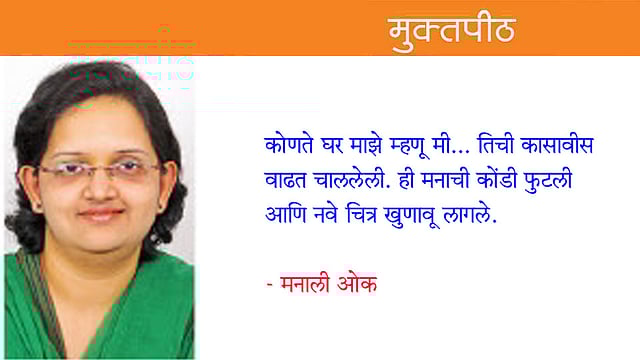 कोणते घर माझे म्हणू मी... तिची कासावीस वाढत चाललेली. ही मनाची कोंडी फुटली आणि नवे चित्र खुणावू लागले.