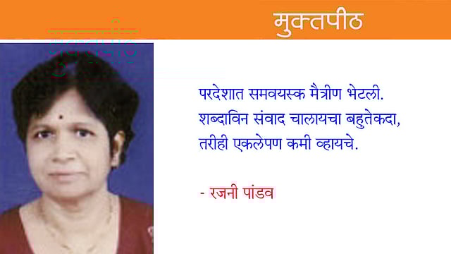 परदेशात समवयस्क मैत्रीण भेटली. शब्दाविन संवाद चालायचा बहुतेकदा, तरीही एकलेपण कमी व्हायचे.