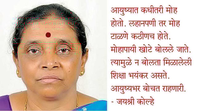 आयुष्यात कधीतरी मोह होतो. लहानपणी तर मोह टाळणे कठीणच होते. मोहापायी खोटे बोलले जाते. त्यामुळे न बोलता मिळालेली शिक्षा भयंकर असते. आयुष्यभर बोचत राहणारी.