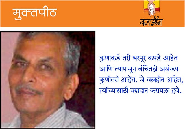 कुणाकडे तरी भरपूर कपडे आहेत आणि त्यापासून वंचितही असंख्य कुणीतरी आहेत. जे वस्त्रहीन आहेत, त्यांच्यासाठी वस्त्रदान करायला हवे.