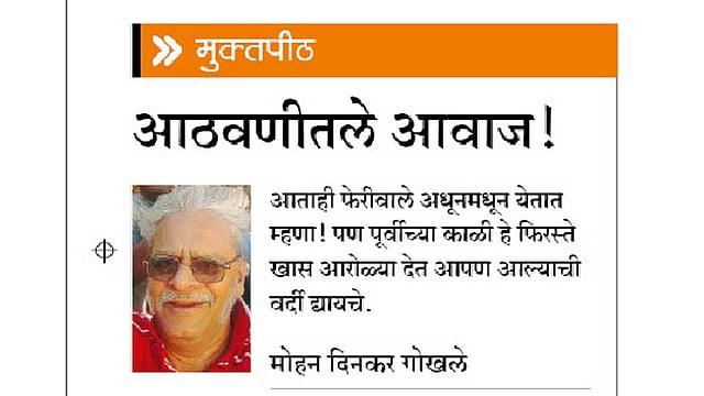 त्याच्याकडून मटकी घेण्याऐवजी त्याची ती पुकारच ऐकत राहायची उत्सुकता असायची. त्या वेळचे भाजीवाले सुद्धा नेहमीचे. त्यांना गिऱ्हाइकांची आडनावे, कुठल्या वाड्यात राहतात ते पक्के माहीत असायचे. ते आडनावाचा पुकारा बरोबर त्या त्या वाड्यासमोर करायचे. पूर्वी ग्रहण सुटल्याबरोबर..."देऽ दान, सुऽटे गिराण' अशा आरोळ्या ऐकू यायच्या.