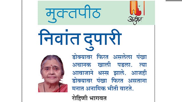 अशा रीतीने सिलिंग फॅन सुरू असताना निखळून खाली पडू शकतो, हे कधी लक्षातही आले नव्हते. आताही पंखे सुरू असताना नकळत त्या दिवशीच्या चित्तथरारक प्रसंगाची आठवण येऊन अंगावर काटा येतो. एक निवांत दुपार या भयानक प्रसंगामुळे कायमच मनात राहिली आहे. देवाचे शतशः आभार मानले आणि पुढील कामाला लागले.