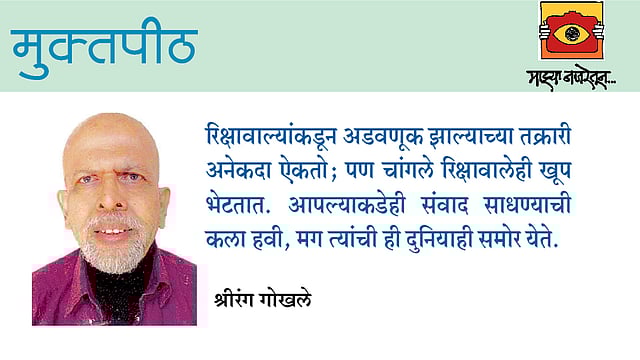 असेच एका रिक्षावाल्याशी बोलताना त्यांनी दोन्ही मुली शिकून उत्तम नोकरी करत आहेत हे अभिमानाने सांगितले. एका मुलीने इंटेरियरची पदविका घेतली व आर्किटेक्टकडे नोकरीला आहे. त्याने मला विनंती केली, की मुलीचे ऑफिस इथेच आहे. तुम्ही जाऊन जरा तिचे काम पाहून या. ‘तुमच्यासारख्या’ लोकांनी बोललेले तिला आवडेल. मी जाऊन आलो. एका छोट्याशा कृतीने दोघांनाही किती बरे वाटले! मधुकर रिक्षावाल्याचा अनुभव तर आगळाच. आंत्रप्रेन्युअर क्लबच्या बैठकीसाठी मी त्यांच्या रिक्षात होतो. वाटेत गप्पा झाल्या. ज्ञानेश्वर-तुकारामांची वचने उद्धृत करून ते मला काहीबाही सांगत होते. नंतर ‘ट्रॅफिक जॅम’ झाला. त्या वेळात मी त्यांना त्यांचा जीवनप्रवास विचारला. लांबच्या गावातून पुण्यात, अपयश, परत गाव, परत पुणे, शिक्षण, मग शिंपीकामाचे शिक्षण, त्यातून रिक्षा. आता या भागात त्यांचे तीन मजली घर आहे. दोन रिक्षा आहेत. आध्यात्मिक वाचन ही त्यांची शक्ती असावी. परत येताना रिक्षा मिळेल का, काय अशा चर्चेतून त्यांनी ‘मी कुठे चाललो आहे’ वगैरे विचारले व तास-दीड तास थांबण्याची तयारी दाखविली. त्या दिवशीच्या बैठकीमध्ये माझ्यासह इतर पाच उद्योजक त्यांचा उद्योगप्रवास उलगडणार होते. शेवटी माझ्या भाषणात मी एक-दोन वाक्ये आजच्या रिक्षावाल्यांवर बोललो, तर सर्वांनी आग्रह केला की बोलवा त्यांना. मी मधुकरना पाच मिनिटे बोलण्यास सांगितले. आमच्या पाच उद्योजकांत या सहाव्या आगंतुक, पण सच्चा उद्योजकाची भर पडली! अर्थात, ही सलगी काही वेळा अंगाशीही यायची. एकदा सकाळी ऑफिसला मला नेणारा रिक्षावाला दर पाच मिनिटांनी डोके बाजूला घेऊन पिचकारी मारत होता. मला नुसते पेटीत पत्र टाकून परत यायचे होते; रिक्षावाल्याला दारात रिक्षा घ्यायला सांगितले. तो म्हणाला, ‘‘आपण लगेत परत जाणार आहात का?’’ मी ‘हो’ म्हणालो, जरा आगाऊपणाने, जोरात म्हणालो, ‘‘पण तुमच्या रिक्षाने नाही, दुसरी करीन. गुटखा खाऊन काय पचापच थुंकत होता! तुम्हाला काही... वगैरे.’’ पैसे काढेपर्यंत धाकधुकीतच उतरलो. चांगला धट्टाकट्टा रिक्षावाला एकदम वाकून पायाला हात लावू लागला, ‘‘साहेब स्पष्टपणे छान सुनावले मला. आजपासून गुटखा बंद!’’ माझ्या मते रिक्षावाल्याचे आयुष्य खडतरच आहे. हे तीन चाकी वाहन तसे ‘अनस्टेबल’ असूनही सध्याच्या बेशिस्त वाहतुकीतही रिक्षांच्या अपघाताचे प्रमाण कमी आहे. जवळच्या ठिकाणी न येणारे आणि संध्याकाळी घरी जायला बघणारे रिक्षावाले मलाही खूप भेटलेत. स्टॅंडवर गप्पात रंगून गेल्यावर सवारी आली म्हणून नाखूष होणारे किंवा खूप वेळ स्टॅंडवर थांबलोय म्हणून कुरकुरणारे मला नेहमी कोड्यात टाकतात. डॉ. चंद्रशेखर फणसळकर यांची ‘रिक्षावाला’ ही एकांकिका बऱ्याच वर्षांपूर्वी ऐकली होती, त्यांच