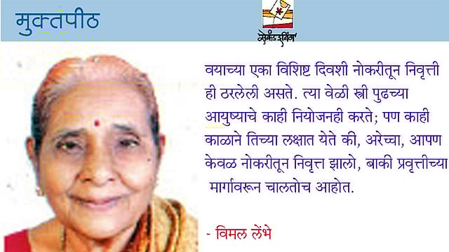 वयाच्या एका विशिष्ट दिवशी नोकरीतून निवृत्ती ही ठरलेली असते. त्या वेळी स्त्री पुढच्या आयुष्याचे काही नियोजनही करते; पण काही काळाने तिच्या लक्षात येते की, अरेच्चा, आपण केवळ नोकरीतून निवृत्त झालो, बाकी प्रवृत्तीच्या मार्गावरून चालतोच आहोत.