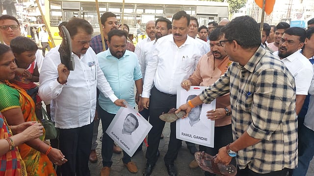 त्यानंतर इंग्रजांनी त्यांना सोबत काम करण्याचं आमंत्रण दिलं. सावरकरांनी इंग्रजांसमोर हात जोडले आणि मी आपल्यासोबत काम करायला तयार आहे.तुमच्या अपेक्षेप्रमाणे मी काम करेन, असं म्हणत राहुल गांधी यांनी सावरकरांच्या स्वातंत्र्य लढ्यातील भूमिकेवर टीका केलीय. काँग्रेस नेते राहुल गांधी यानी सावरकर यांच्यावर टिका करून सावरकरांचा व हिंदु प्रेमीचा अवमान केल्याच्या निषेधार्थ गुरुवारी शिंदे गटाच्या बाळासाहेबांची शिवसेना डोंबिवली व कल्याण ग्रामीणच्या वतीने कॉंग्रेस नेते गांधी यांच्या विरोधात जोडे मारो आंदोलन केले.