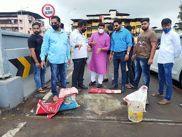 चांगल्या कामाला कसे गालबोट लावायचे हे काही पक्षांचे काम आहे. ते केवळ पाहणीच करू शकतात, विधायक कामे करू शकत नाहीत असा प्रति टोला शिवसेनेचे दीपेश म्हात्रे यांनी मनसे आमदारांना लगावला. पुलावरील जॉईंट हे काँक्रीट चे आहेत त्यावरील डांबर निघाले होते. शेवटच्या टप्प्यातील डांबरीकरणाचे काम शिल्लक आहे.