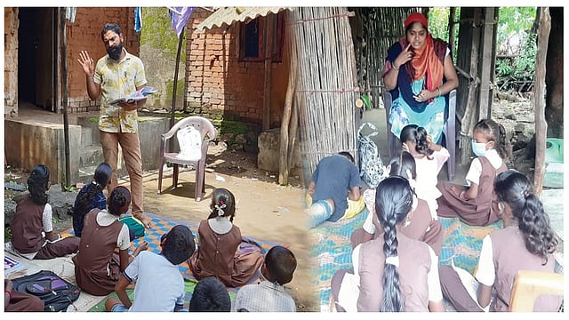 भिवंडी तालुक्यातील चावे-भरे गावात राहणारे रूपेश सोनवणे हे वकिलीच्या शेवटच्या वर्षाचे शिक्षण घेत आहेत; तर त्यांची पत्नी रेश्मा सोनावणे या भिवंडी पालिकेत सफाई कर्मचारी म्हणून कार्यरत आहेत. रेश्मा यांना सुरुवातीपासूनच शिकविण्याची आवड असल्याने त्यांनी आपले डीएडचे शिक्षणदेखील पूर्ण केले आहे. मात्र कौटुंबीक अडचणींमुळे त्यांनी शिक्षिका बनायचे स्वप्न बाजूला ठेवत पालिकेत सफाई कामगार म्हणून काम सुरू केले. तरीही शिकवण्याची आवड त्यांना स्वस्थ बसून देत नसल्याने त्यांनी लॉकडाऊनची संधी साधून आदिवासी विद्यार्थ्यांना स्वेच्छेने शिकवण्यास पुढाकार घेतला आहे.