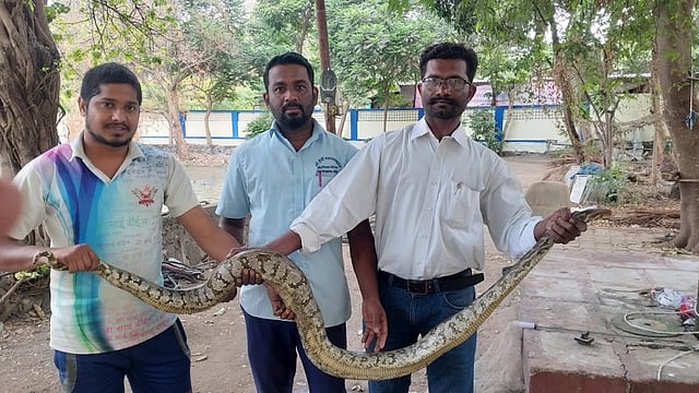 पालिका कर्मचारी सचिन पाटील व श्याम मेहेर हे कार्यावर होते. त्यांना पाण्याचा टाकीच्या बाजूला भलामोठा अजगर आढळला. सचिन पाटील यांनी ताबडतोब सर्पमित्र दीपक गायकवाड यांना कळविले असता गायकवाड, कलमेश मनगुटकर यांनी ताबडतोब त्या ठिकाणी जाऊन पाहणी केली. त्यांनी आठ फूट लांबीच्या अजगराला मोठ्या शिताफीने पकडल्यानंतर जंगलात सोडून जीवदान दिले. या अगोदर याच ठिकाणी सात-आठ महिन्यांच्या कालावधीत चार अजगर, दोन, धामण, घोणस, एक कोब्रा आढळून आला आहे. गायकवाड यांनी त्यांना पुन्हा जंगलात सोडून जीवदान दिले.