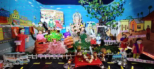 देशात २० मार्च पासून पसरलेल्या कोविडवर मात करण्यासाठी संपूर्ण देश जिद्दीने लढत आहे. त्यात फ्रंट लाईन वर्कर (डॉक्टर, स्वच्छतादूत, पोलीस, आशा वर्कर) यांनी आपल्या जीवाची पर्वा न करता भारतवासियांना वाचवले आहे. कोरोना संपला नसल्याने त्यांची महामारीविरोधातील लढाई अद्याप सुरुच आहे.त्यांच्या लढाईत भारतीयांचीही साथ आहेच. या कामाला सलाम करण्यासाठी टेंभीपाडा गावातील वैती परिवाराने सुंदर असा देखावा उभा केलेला आहे.