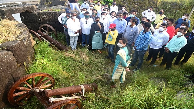 केंद्रीय पुरातत्त्व विभागाच्या (एएसआय) अधिकाऱ्यांसोबत १९ सप्टेंबरला ऑनलाईन बैठक घेतल्यानंतर शुक्रवारी (ता. २) सायंकाळी पालकमंत्री अदिती तटकरे, खासदार सुनील तटकरे, जिल्हाधिकारी निधी चौधरी, पुरातत्त्व विभाग मुंबई सर्कलचे अधीक्षक (प्रभारी) डॉ. राजेंद्र यादव यांनी कुलाबा किल्ल्याला भेट दिली. या वेळी त्यांनी संपूर्ण किल्ल्याची पाहणी करून झालेल्या पडझडीची प्रत्यक्ष पाहणी केली.