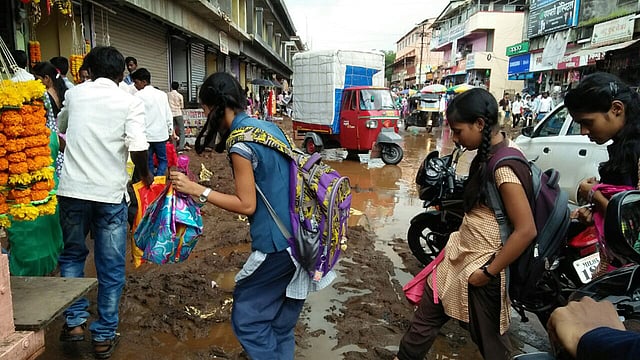 मुरबाड (जि. ठाणे) : नगर पंचायतीने दुर्लक्ष केल्याने मुरबाड बाजारपेठेतील मुख्य रस्ता सिमेंट काँक्रीटचा होऊनही तेथे चालणे मुश्किल झाले आहे. व्यापारी गाळ्यांचे बांधकाम करणाऱ्या लोकांना व रस्त्यावर दुकाने लावणाऱ्याना हा रस्ता आंदण दिला आहे असे वाटण्यासारखी येथील परिस्थिती आहे. ठिकठिकाणी बांधकाम साहित्य पडले आहे. गावातील खड्ड्यातील रस्ता कि रस्त्यावर पडलेले खड्डे अशी परिस्थिती आहे. ही सर्व विघ्ने पार करीत गणरायाचे आगमन होणार आहे.