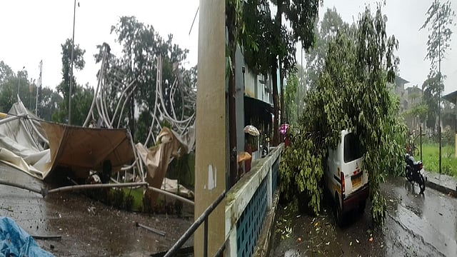 पामबीच मार्गावर नेरूळ आणि बेलापूर जवळ काही झाडे रस्त्यावर कोसळल्यामुळे वाहतूक कोंडी झाली होती. तसेच कोपरखैरणे आणि ऐरोली भागातही झाडे कोसळल्यामुळे रस्त्यावर वाहनांच्या रांगा लागल्या होत्या. बेलापूर आणि खारघर दरम्यान विजेचा खांब रस्त्यावर पडला होता. तळोजा पेट्रोल पंप ते पल्लवी हॉटेल दरम्यान रस्त्यावर झाडे कोसळल्यामुळे एकेरी वाहतूक सुरू होती.