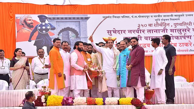 सोमवारी (ता. 17) पोलादपूर तालुक्यातील उमरठ येथे महाराष्ट्र शासन, जिल्हा परिषद रायगड आणि नरवीर तानाजी मालुसरे सोहळा समिती यांच्या वतीने नरवीर तानाजी मालुसरे यांच्या 350 व्या पुण्यतिथीनिमित्त समाधी वास्तूचा लोकार्पण सोहळा मुख्यमंत्र्यांच्या हस्ते झाला, त्या वेळी ते बोलत होते. या कार्यक्रमास पालकमंत्री आदिती तटकरे, जिल्हा परिषद अध्यक्ष योगीता पारधी, आमदार भरत गोगावले, आमदार अनिकेत तटकरे, आमदार महेंद्र दळवी, आमदार महेंद्र थोरवे, जिल्हाधिकारी निधी चौधरी आदी उपस्थित होते. या वेळी मुख्यमंत्र्यांच्या हस्ते कृषी विभागाच्या शेतकरी योजनेच्या चित्रफितीचे अनावरण करण्यात आले.