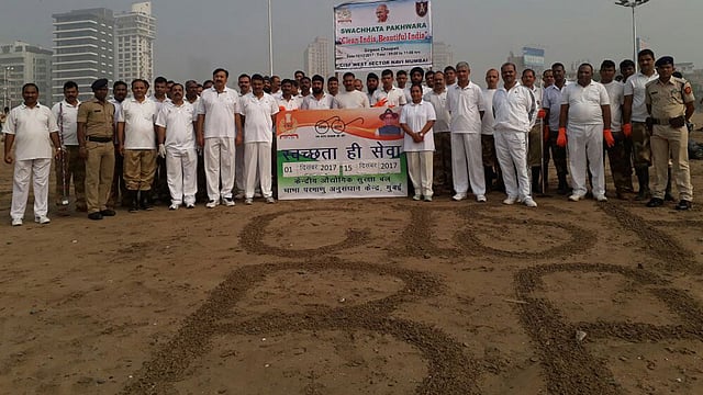भारत सरकारअंतर्गत येणाऱ्या विविध संस्था, विमानतळे, बीएआरसी, कारखाने, जहाज पोर्ट, माझगाव डॉक सारख्या अत्यंत महत्वाच्या विभागांची सुरक्षा करणारे सशस्त्र दल असलेल्या केंद्रीय औद्योगिक सुरक्षा दलाचे मुंबई विभागीय महासंचालक सतीश खंदारे यांच्या मार्गदर्शनाखाली पश्चिम विभागाचे एआयजी हिमांशू पांडे, अमित शर्मा, शिप्रा श्रीवास्तव यांच्यासह 250 जवान व त्यांच्या कुटूंबियांनी सकाळी 8:30 ते 11:00 दरम्यान स्वच्छता मोहीम राबवित चौपाटीवरील कचरा गोळा केला. पांढरे शुभ्र गणवेशधारी जवान आज हातात रायफल, स्टेनगन ऐवजी झाडू, फावडे, लोखंडी पंजे, काळ्या पिशव्या घेत कचरा गोळा करताना दिसत होते. त्यांनी जवळपास 100 ते 110 पिशव्या भरून कचरा गोळा केला. हा ओला कचरा भरलेल्या पिशव्या पाण्यातून बाहेर ओढत आणताना अधिकारी वर्ग आणि जवानांची चांगलीच दमछाक झाली. या मोहीमेत एकजा व तनिष्का या एनजीओच्या सदस्यांनी सहभाग घेतला.